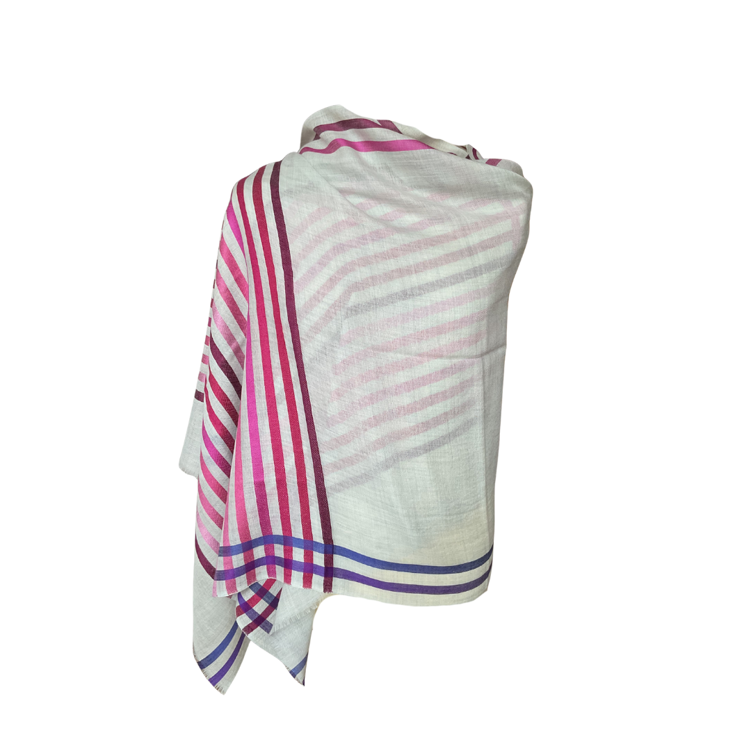 Aishiteru Amélie Woll- & Seidenschal – Strahlende Eleganz in rosa Streifen