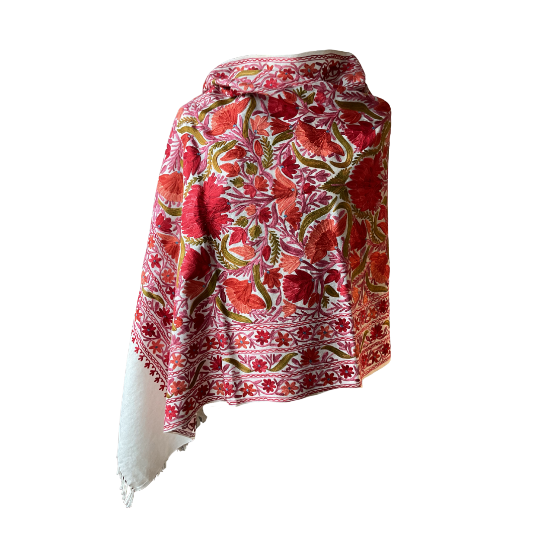 Der bestickte Aishiteru Fiorella Wollschal feiert die Poesie der Natur durch Farbe und Handwerkskunst.