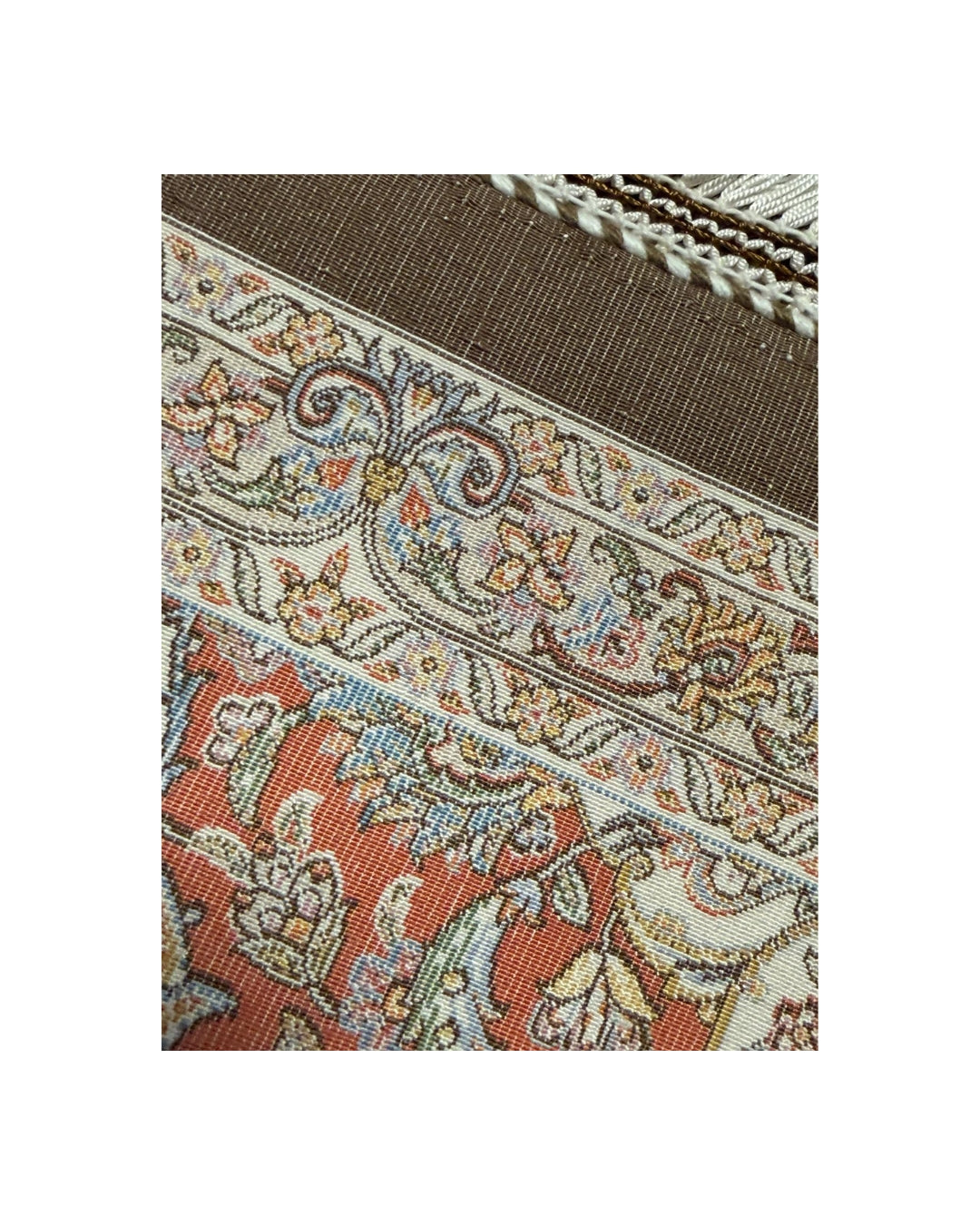 Gefertigt aus 100 % natürlicher Seide, besticht dieser Teppich durch seine besonders feine Haptik und seinen leuchtenden Glanz, der sich je nach Lichteinfall subtil verändert. Die raffinierte Komposition mit zentralem Medaillon und floralen Motiven, inspiriert von der klassischen persischen Ästhetik, verleiht dem Stück Harmonie und dauerhafte Eleganz.
