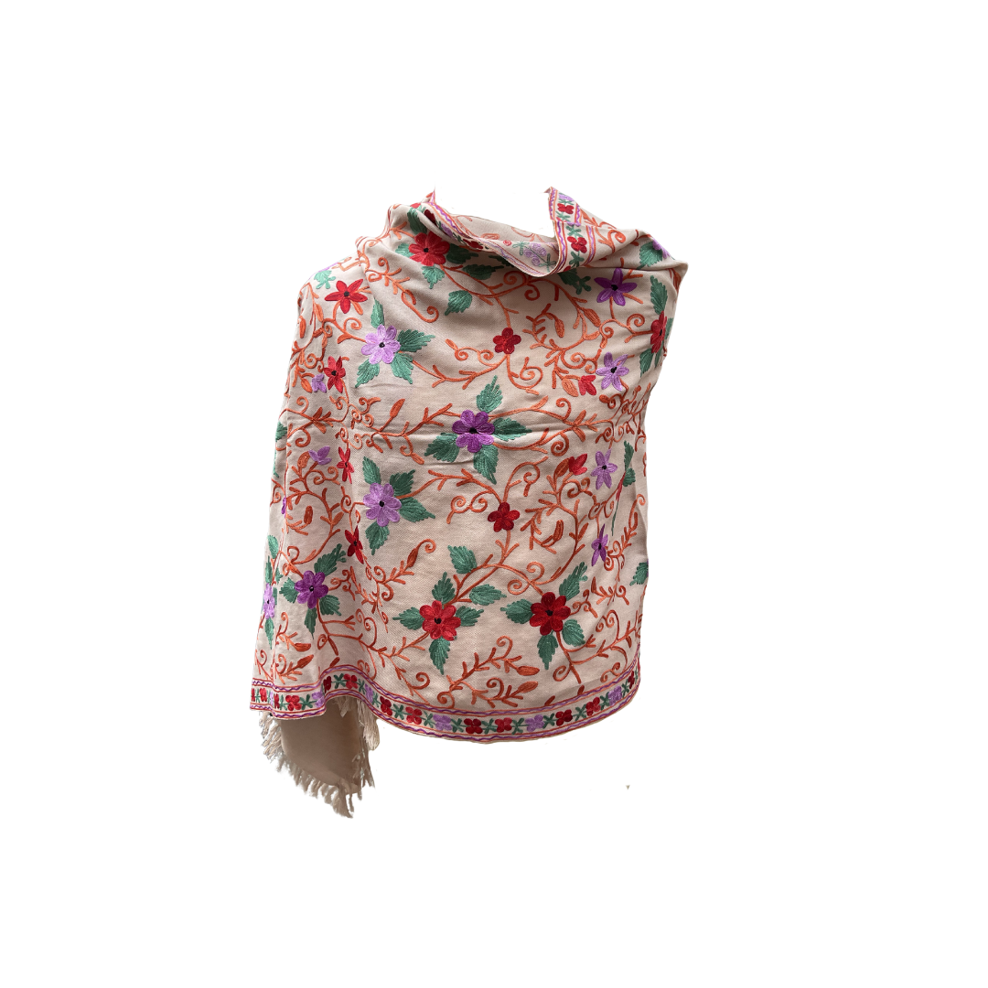 Châle en laine brodé Aishiteru Angelina – Floral ivoire