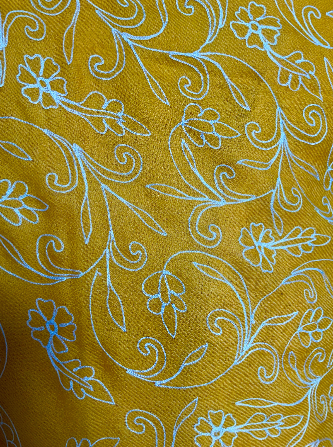 Aishiteru – Écharpe en Cachemire Brodée Marilise – Harmonie Dorée en Fleurs