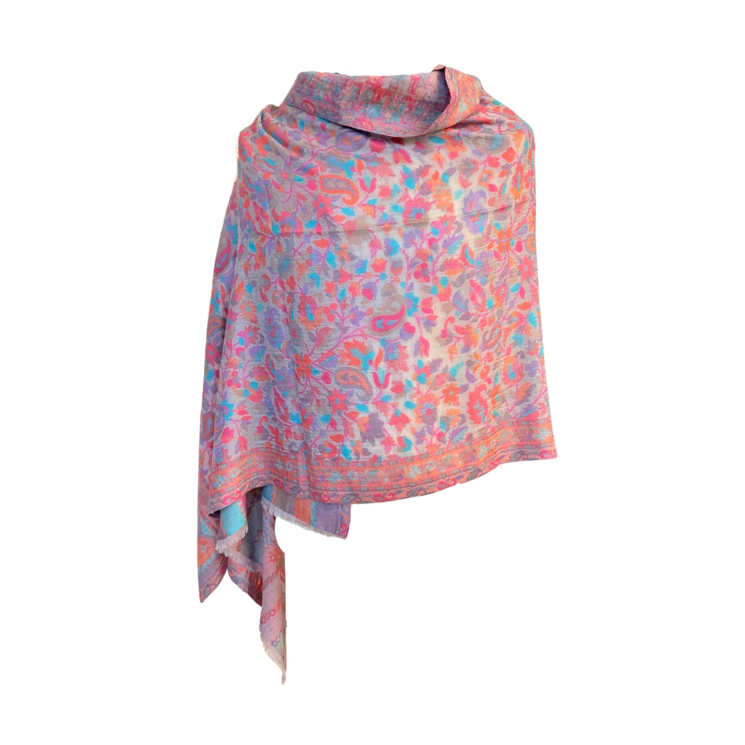 Le châle en cachemire Aishiteru Meliora Kani exprime une élégance subtile et une douceur poétique à travers un savoir-faire ancestral raffiné. Tissé à la main selon la technique traditionnelle Kani, ce modèle d’exception dévoile de délicats motifs floraux et paisley semblant flotter sur un fond ivoire-beige doux, illuminé par des nuances pastel de rose, de corail, de lilas et de turquoise.
