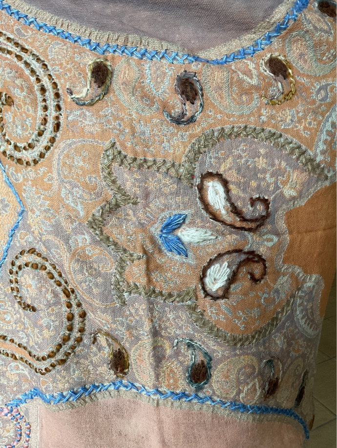Exquisément fabriqué à la main, Lysandra présente une broderie paisley complexe et une harmonie de couleurs raffinée — mêlant maîtrise artisanale et sophistication moderne.