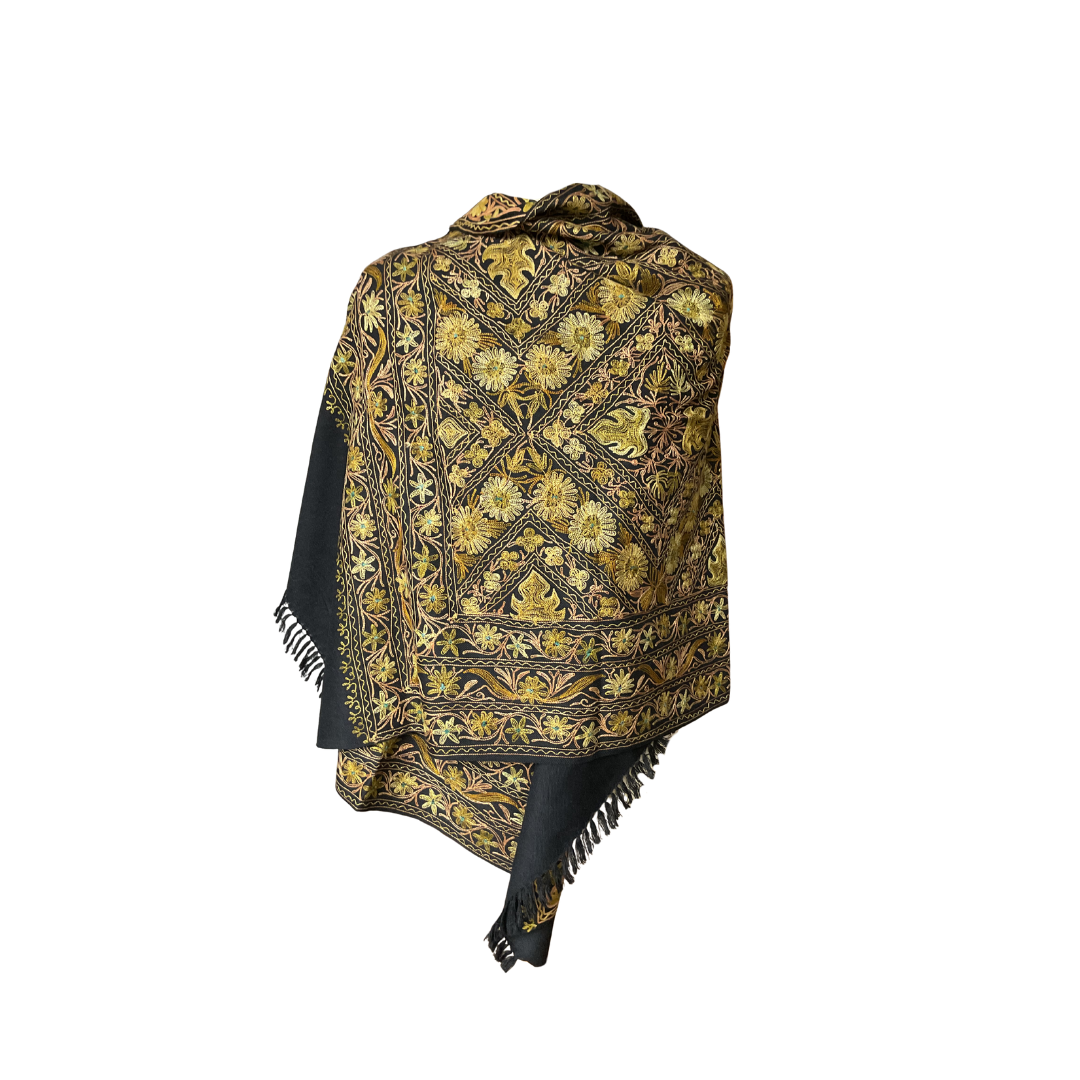 Châle en laine brodé Aishiteru Noirelia – Héritage Doré