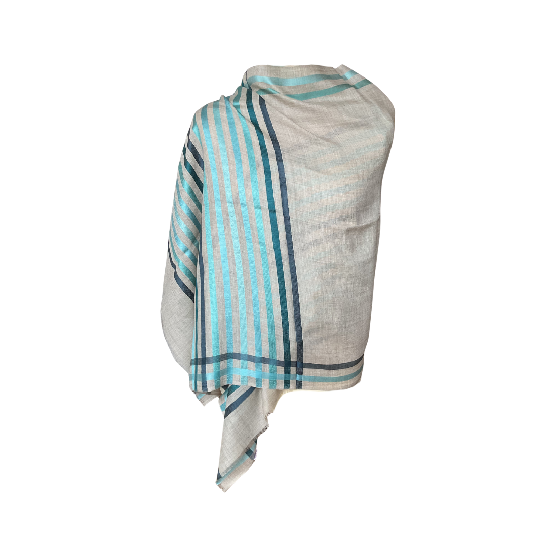 Écharpe en laine et soie Aishiteru Saphira – Harmonie rayures côtières