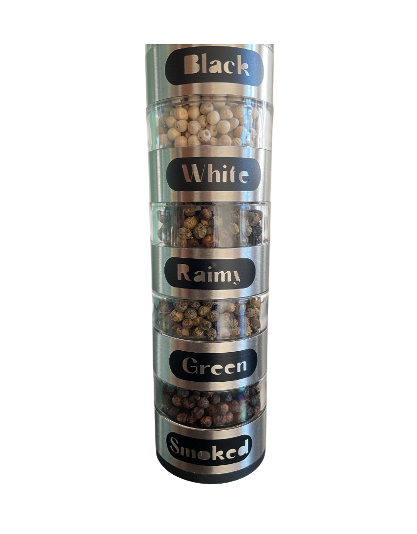 Poivrier de dégustation - Poivre noir, blanc, vert, fumé & mixte