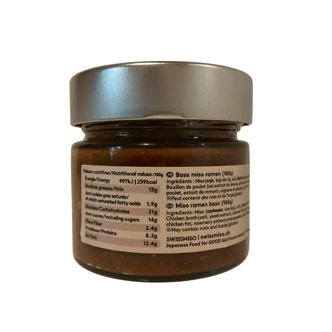 SwissMiso’s Ramen Premium Base combines rich red miso with sesame oil, garlic, and ginger, blended harmoniously with a delicate Swiss-made chicken broth to deliver a deep, umami-packed flavor.